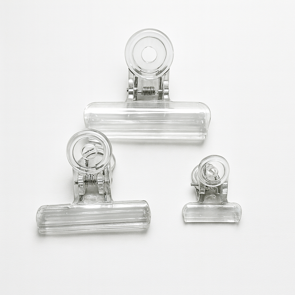 Súprava troch štipcov rôznych veľkostí určených pre viazanie mušiek. Štipce umožňujú jednoducho uchytiť pierka, syntetické materiály či iné viazacie prvky a pohodlne ich umiestniť do slučky. Transparentné prevedenie neprekáža pri práci a pevná kovová pružina zaručuje stabilný tlak.